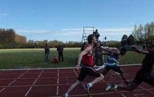 Alors que le soleil faisait (enfin) à son apparition, le meeting adulte pouvait prendre place. La compétition débutait par le 100m Femmes remporté par Pernelle Dumesnildot (ELAN59) - malgré la présence d'un OCNI (Objet Courant Non Identifié) - dans un excellent chrono de 12"94. Chez les hommes la bataille fut rude et c'est Clément Lair (ELAN59) qui finit par l'emporter en 11"28 devant Jean-Daniel René-Dit-Bois (LMA) et Mathieu Amouroux (ELAN59) en 11"32 et 11"34.
